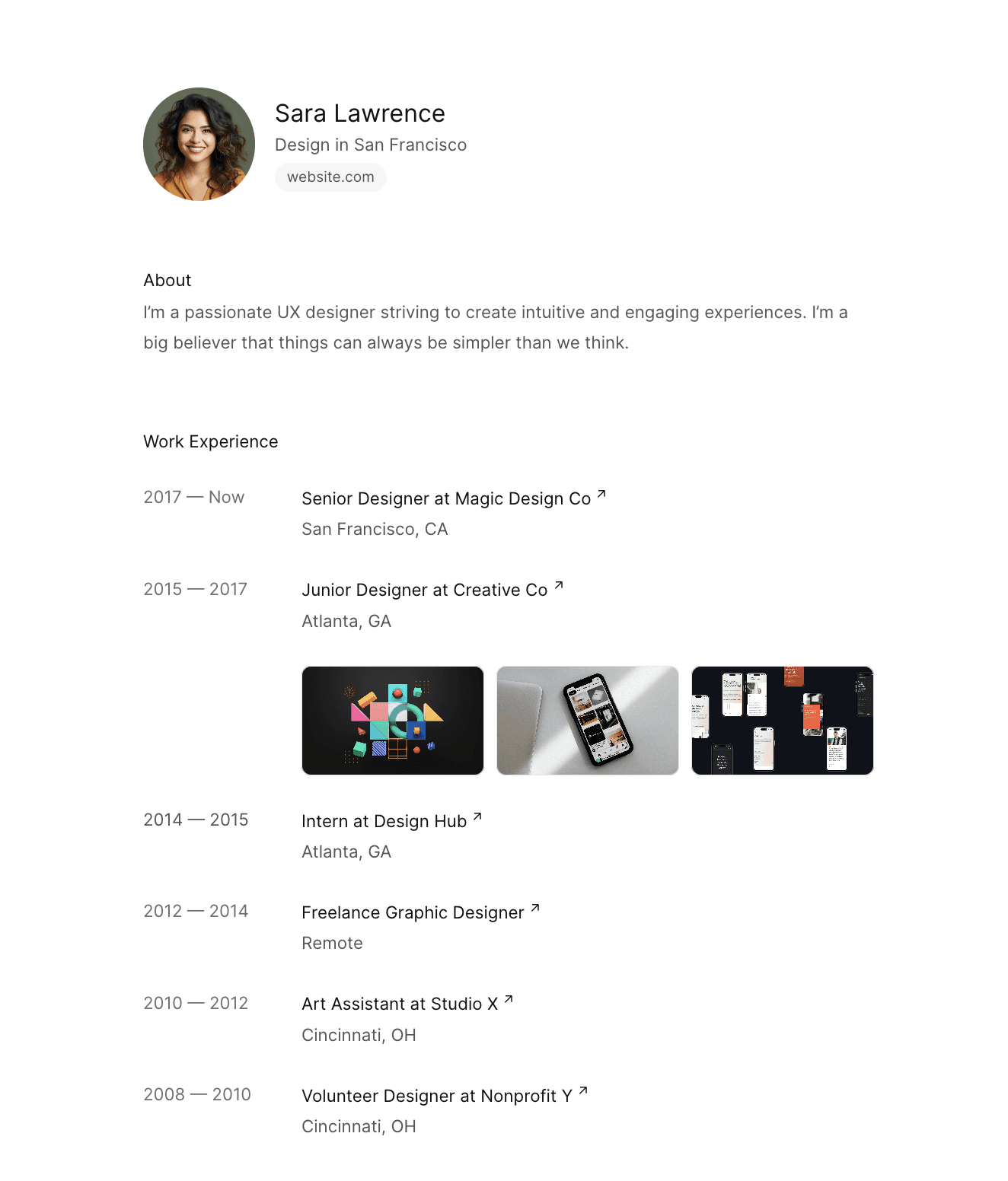 Copy CVs and portfolio structures from 300+ designers who landed job offers.